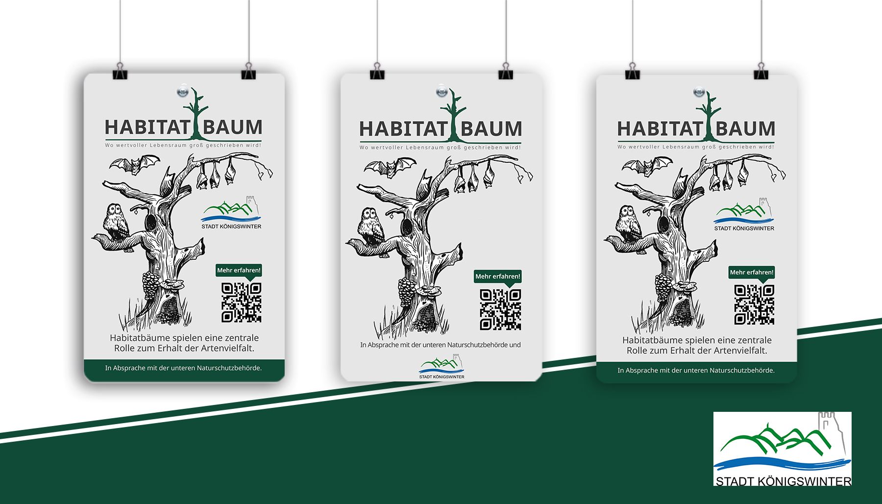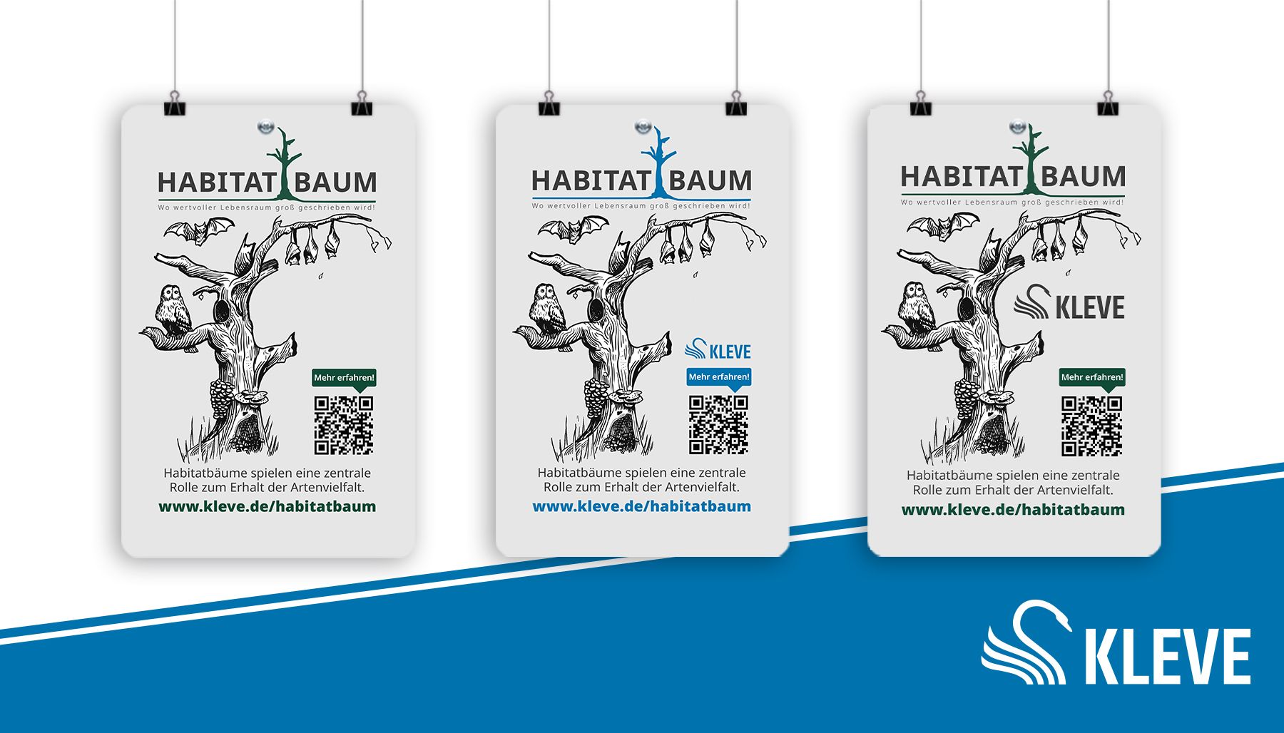 Die Ausführung und Gestaltung des Habitatbaumschildes stößt bei den interessierten Bürgerinnen und Bürgern auf positive Resonanz. Durch den eingefügten QR-Code können sich Interessierte auf der Webseite der Stadt Kleve über die jeweiligen Standorte und die Bedeutung der Habitate für die Biodiversität informieren.